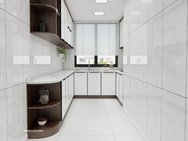 • Nội thất bếp & tủ âm tường: Gỗ HDF, MDF chống ẩm phủ sơn trắng, tinh tế và bền đẹp.
