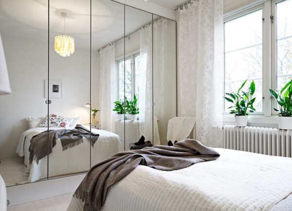 3. Treo gương đối diện giường ngủ