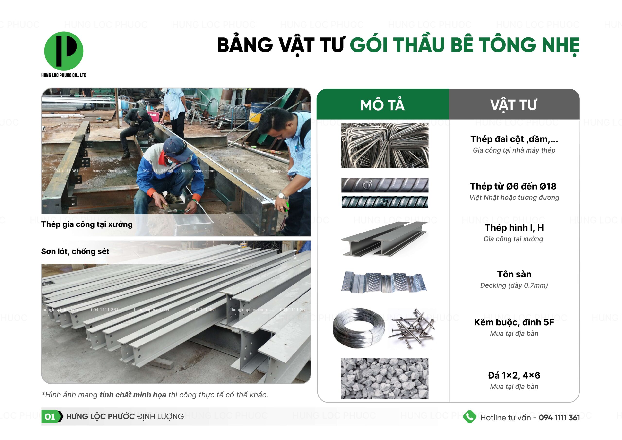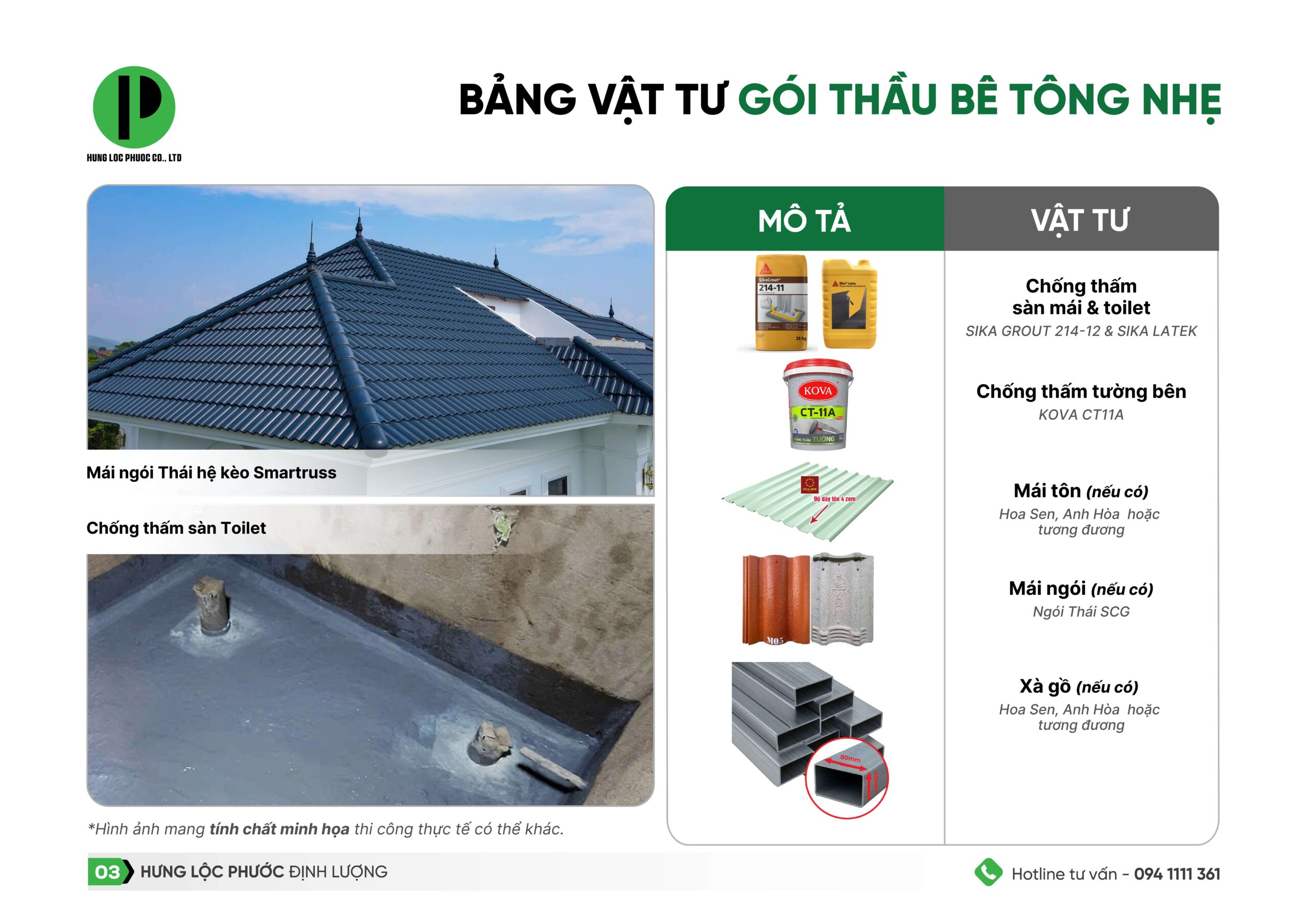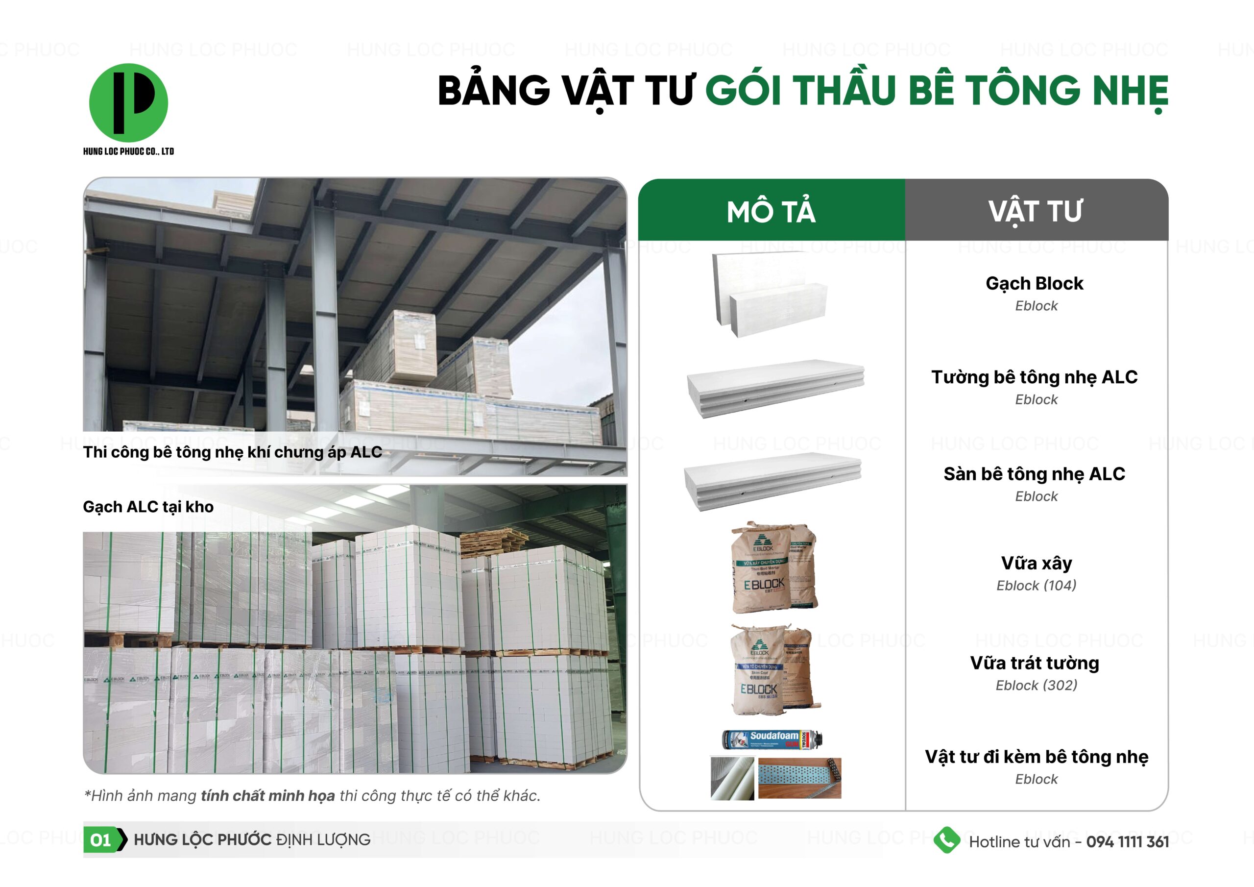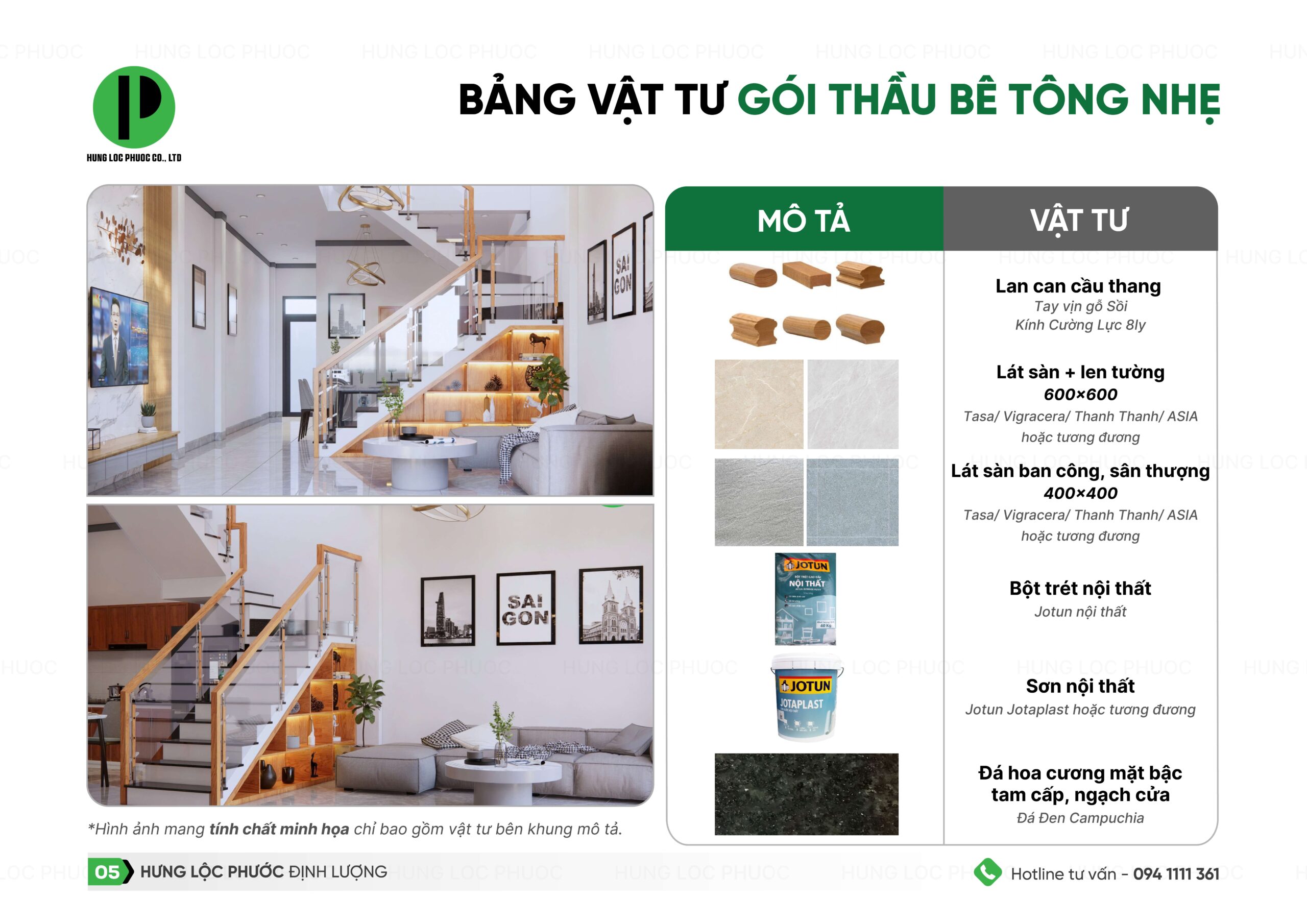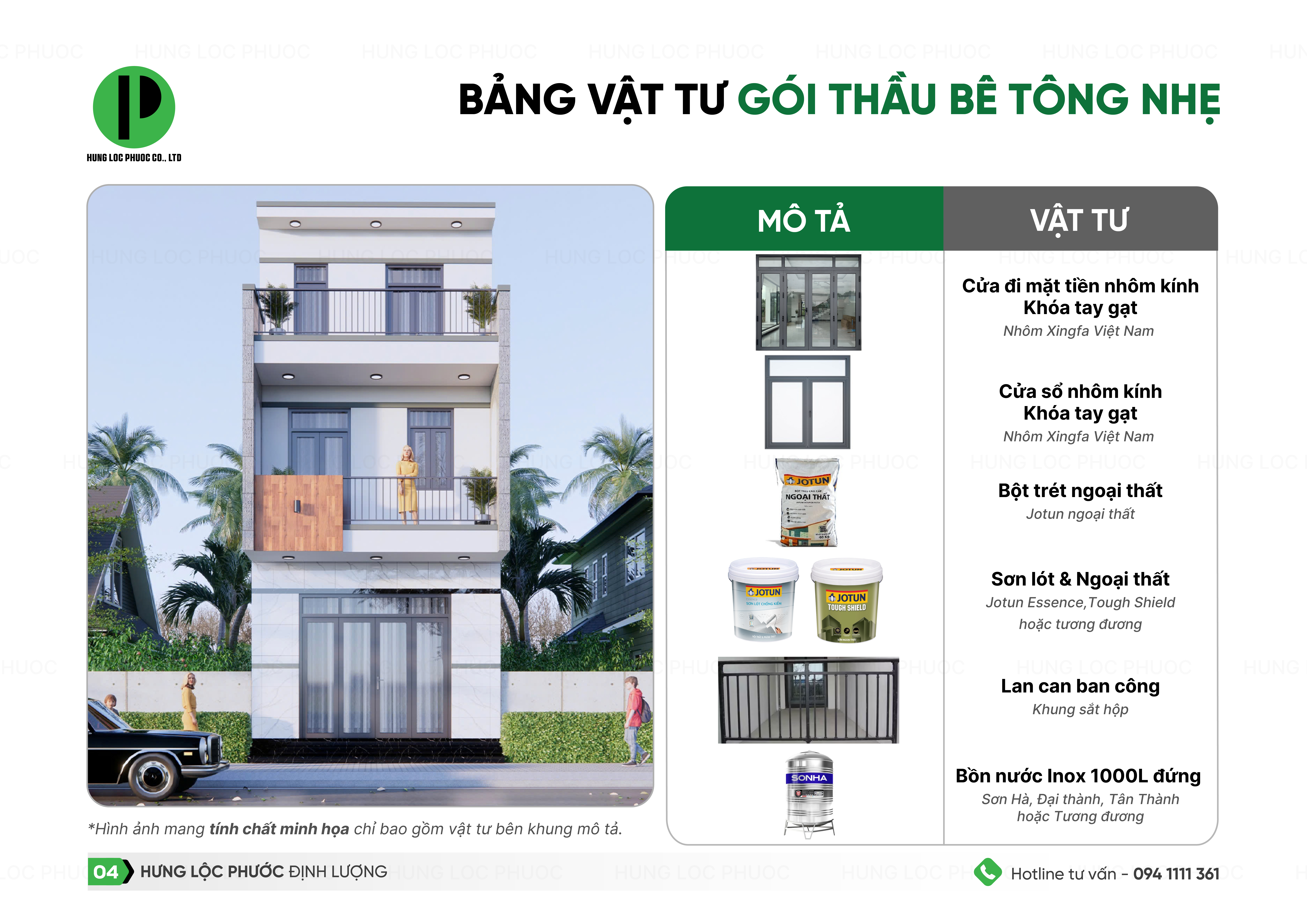 Nhằm đáp ứng theo tiêu chí chất lượng cho khách hàng Hưng Lộc Phước sẽ giới thiệu những thương hiệu vật liệu xây dựng tốt nhất cho quý khách hàng lựa chọn. Đồng thời hỗ trợ tư vấn chuyên môn để giúp cho quý khách hàng có thể xây dựng nhà bằng bê tông nhẹ với khoản kinh phí ban đầu không phát sinh.